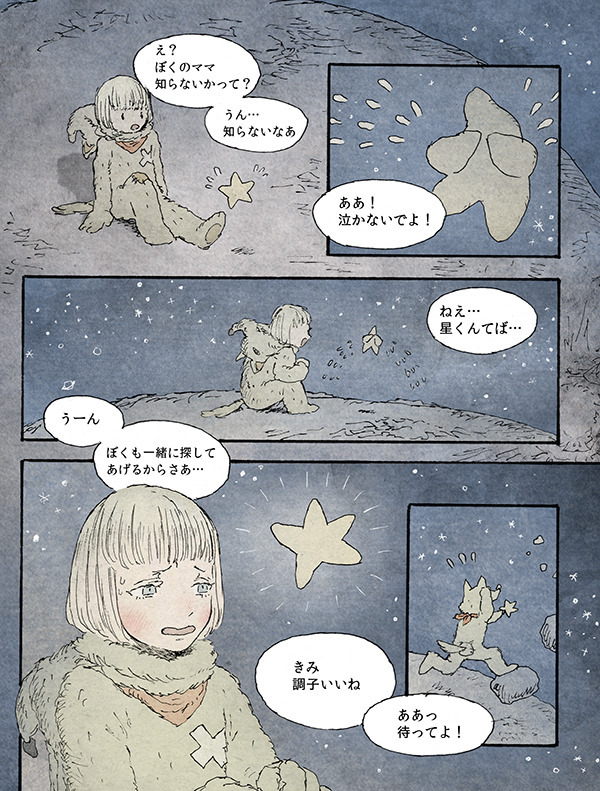 豊かな心を持った子、オオカミ少年が迷い星のママ探しをする話です。