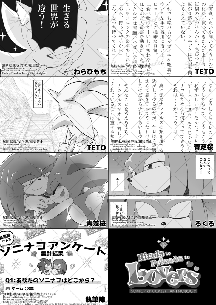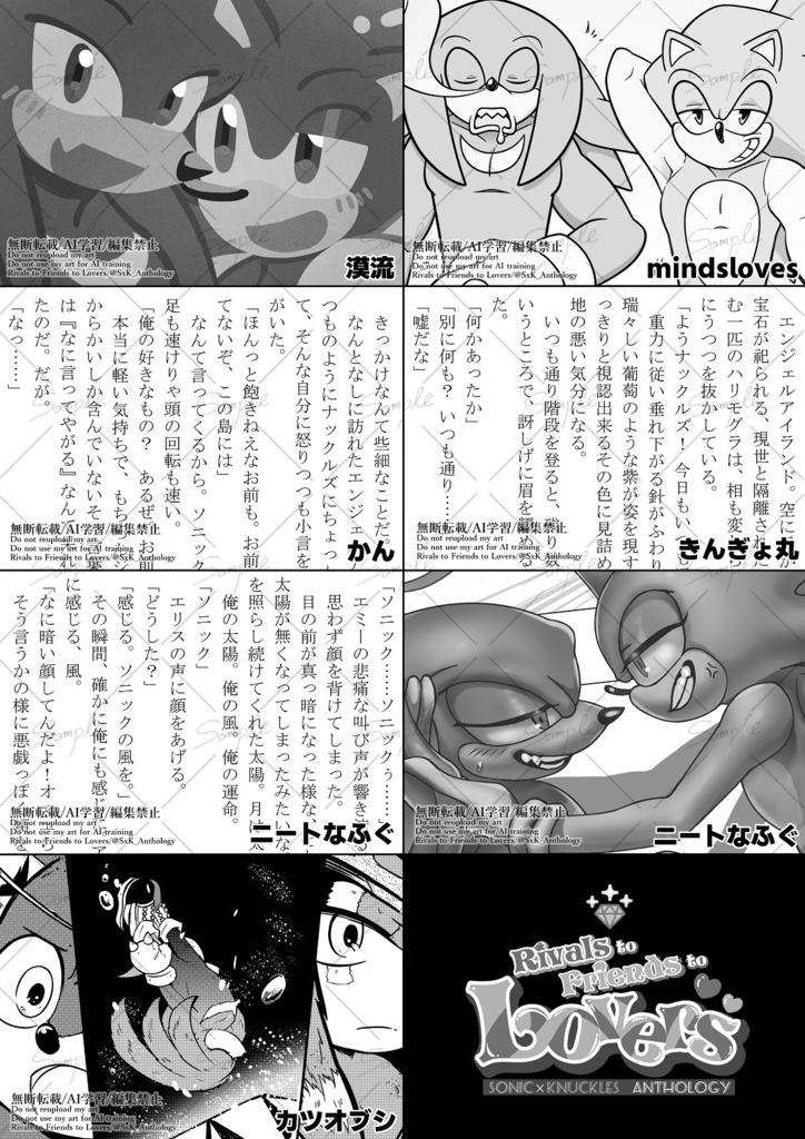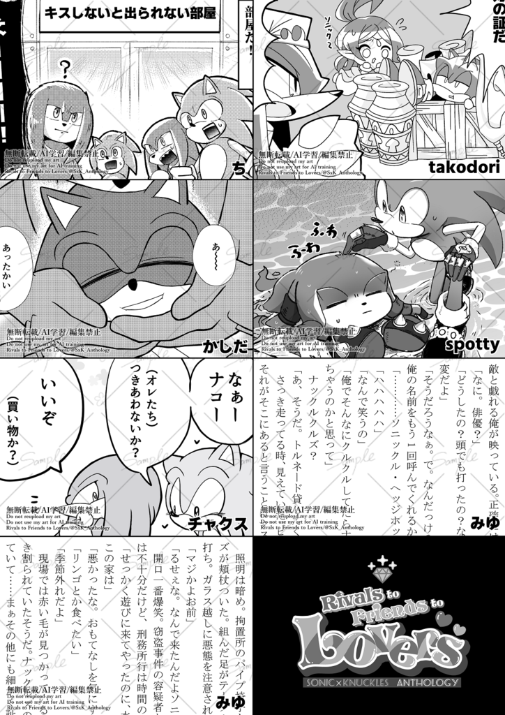 This is a large scale SonicxKnuckles anthology sent by a total of 29 members!