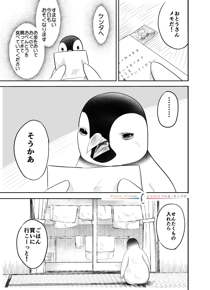 人間の社会の中で暮らすペンギンたちの世界。 ある日見知らぬペンギンさんがやってきた日のお話。 ペンギンシリーズ、久しぶりに描く事ができました。 冒頭試し読みページはこちら↓ https://www.kigiki.net/comic/comic_penguin_Tabi/ A5/P26