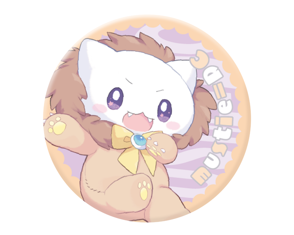 https://x.com/doughnutscinema「ハンドルネームとおやすみ」仕様のマスティの缶バッジです(イラスト:えび様)