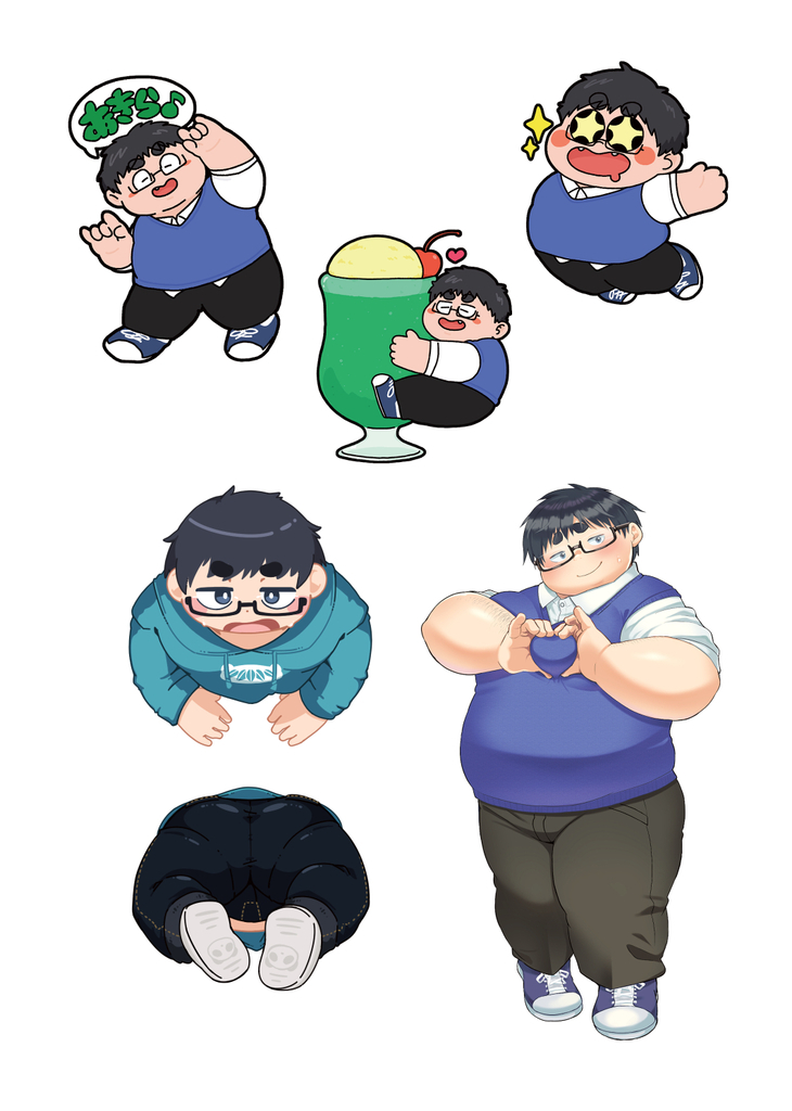 ヒトあきらのA5サイズのさまざまなイラストのハーフカットステッカーです!