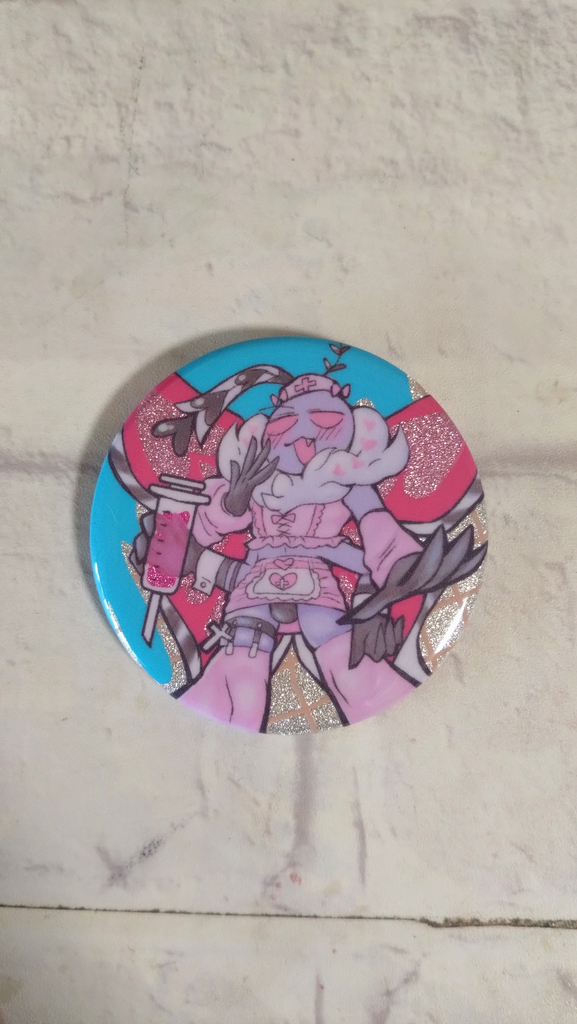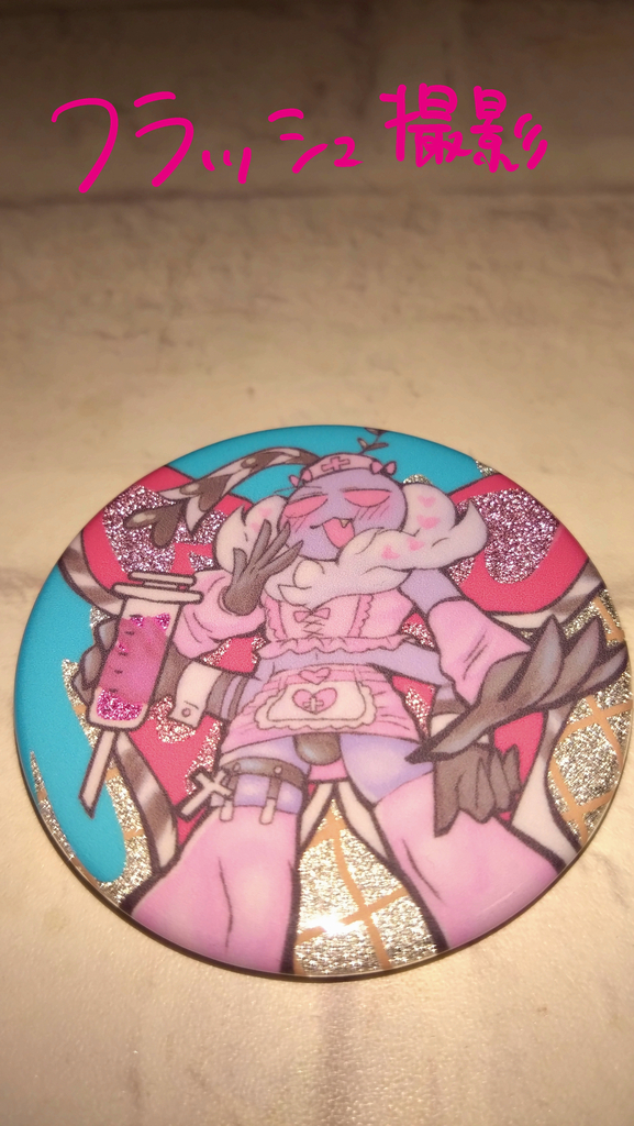 一部絵柄がグリッターでキラキラする缶バッジです。
