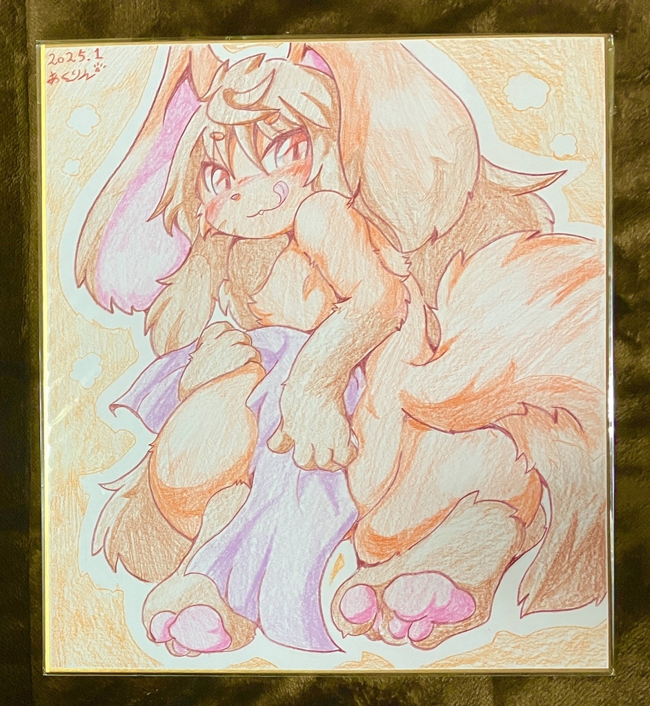 オリジナルケモ男の娘、スフレの色紙です ※オスです/サイズ:大色紙27x24cm 色鉛筆使用 一点物です/ビニール梱包してあります