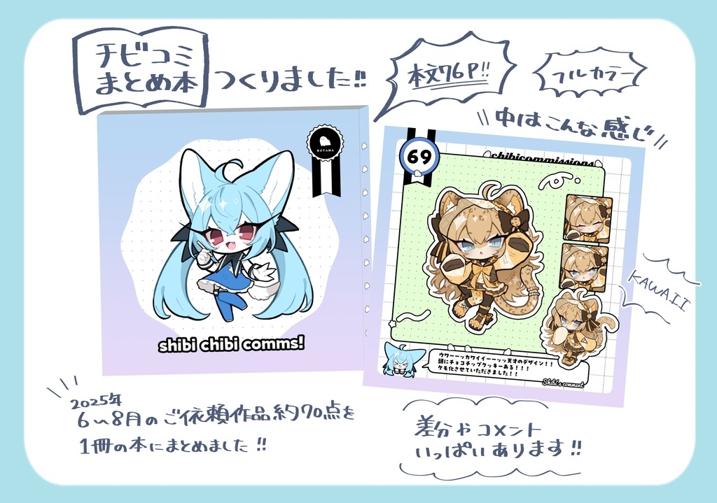 https://twitter.com/sbi_arki2025年6〜8月に描かせていただいた、chibi commissionご依頼作品を一冊の本にまとめました!