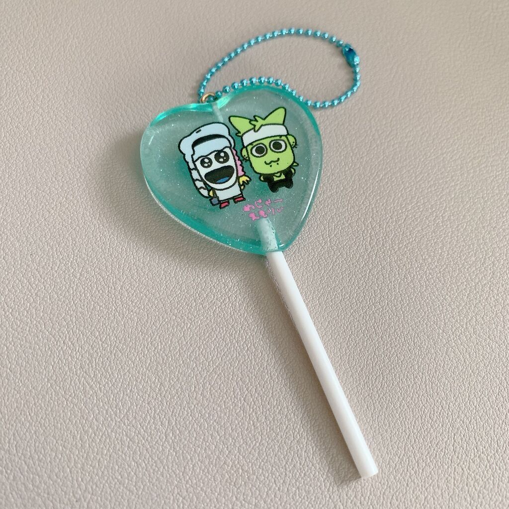 This book comes with three free pieces of merch: (1) lollipop-shaped acrylic key chain, (2) Tenugui (Japanese style hand towel), and (3) Small acrylic earrings.