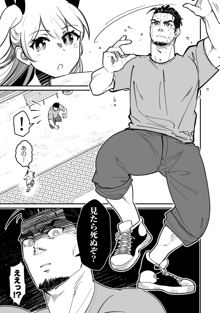 https://x.com/masapeko33かなうは最近漫画を描き始めた大学2年の女性。ある朝、構内を歩いていたら、芝生広場に舞を舞っている30代くらいの高身長・筋肉質の男性がいた。