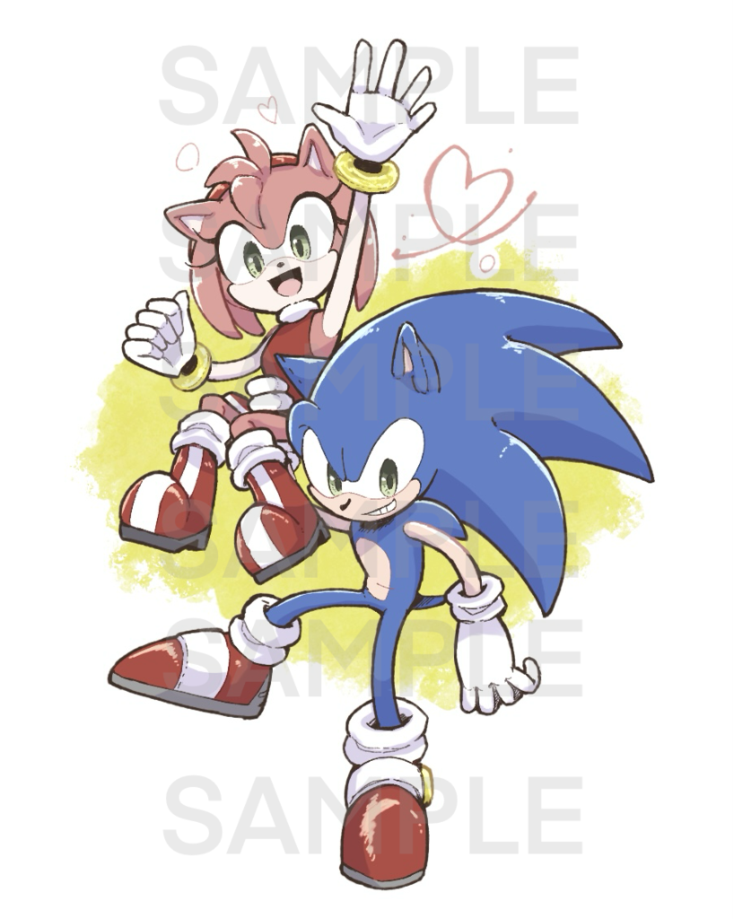 ソニック×エミー(ソニエミ)のアクリルキーホルダーです。 裏は白無地になります。