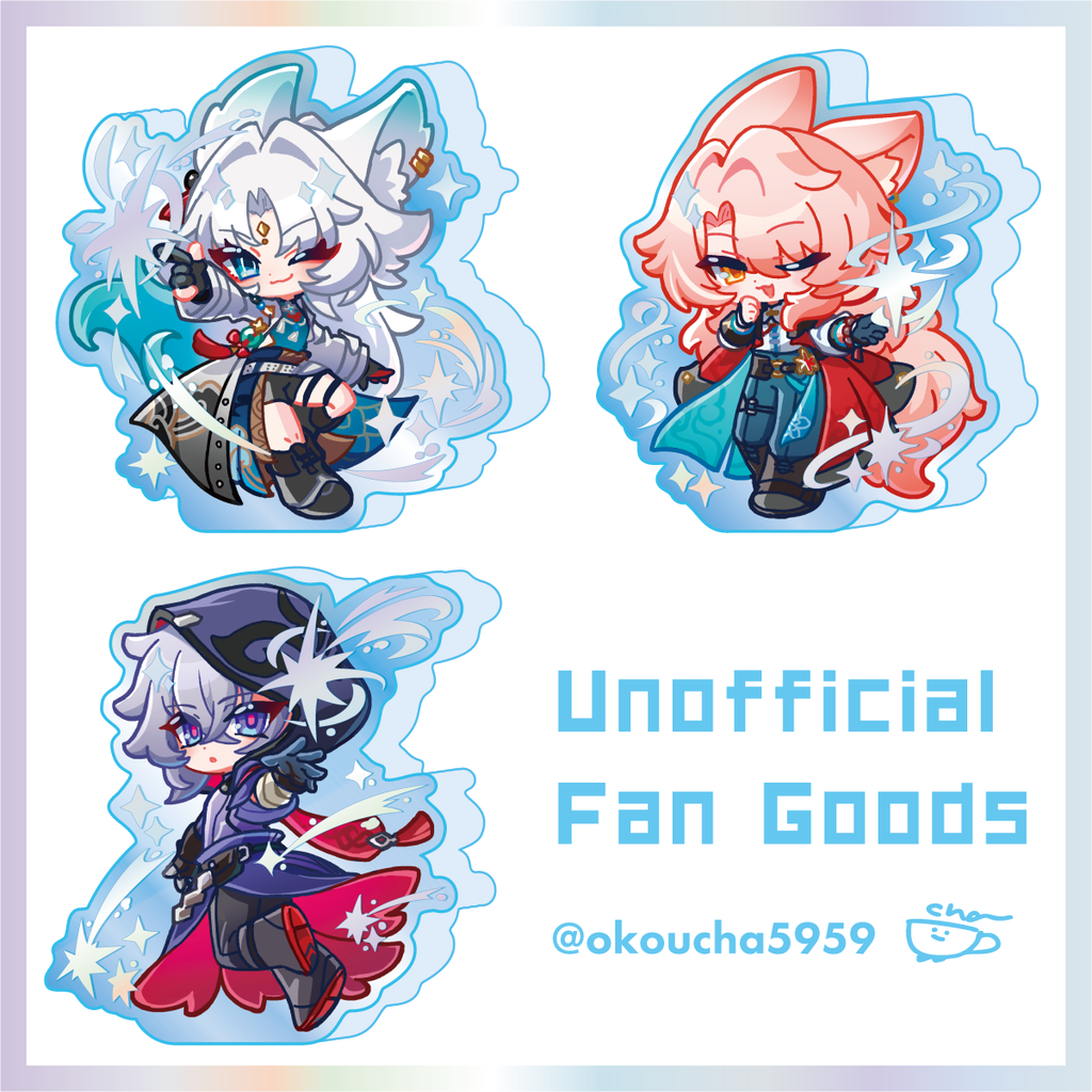 10mm厚の特殊アクリルに箔押しを施した自立アクリルブロックです。 3人セット。 ・片面印刷 ・特殊アクリル+箔押し+表面グロスコート ・高さ約100mm、厚み10mm ※裏面のシートを剥がしてご使用ください。 ※裏面のオーロラフィルムは大変傷つきやすい素材です。 重みがありやや不安定なため、転倒にご注意ください。