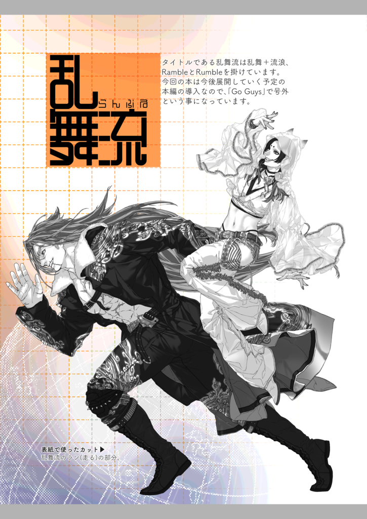 今後展開していく予定の物語のあらすじと、乱舞流の世界を駆け巡る主人公2人の設定集です。