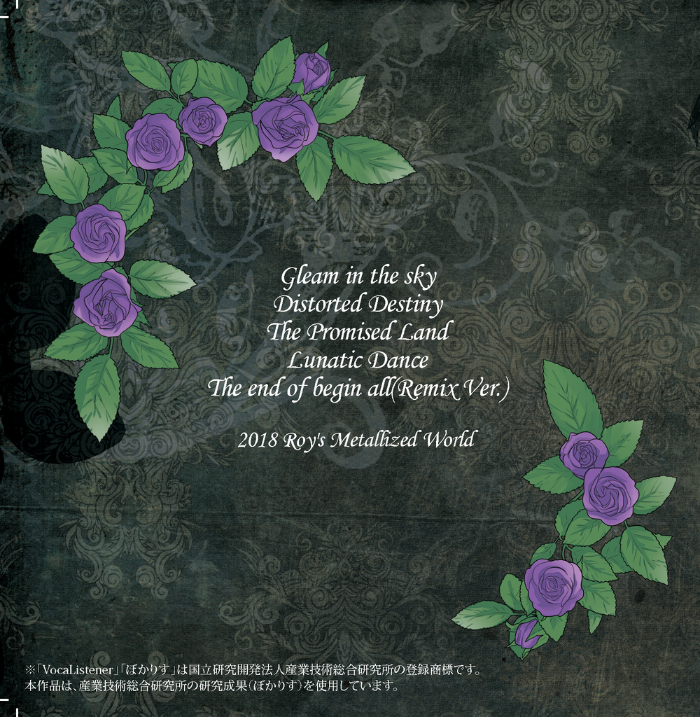 http://roymetalnasu.blog23.fc2.com約6年振りの発表となる4thミニアルバムROY本人の歌唱をぼかりすを使って変換、がくっぽいどPOWERが全5曲のハードロック&ヘヴィメタルナンバーを高らかに歌い上げる渾身の一作!!