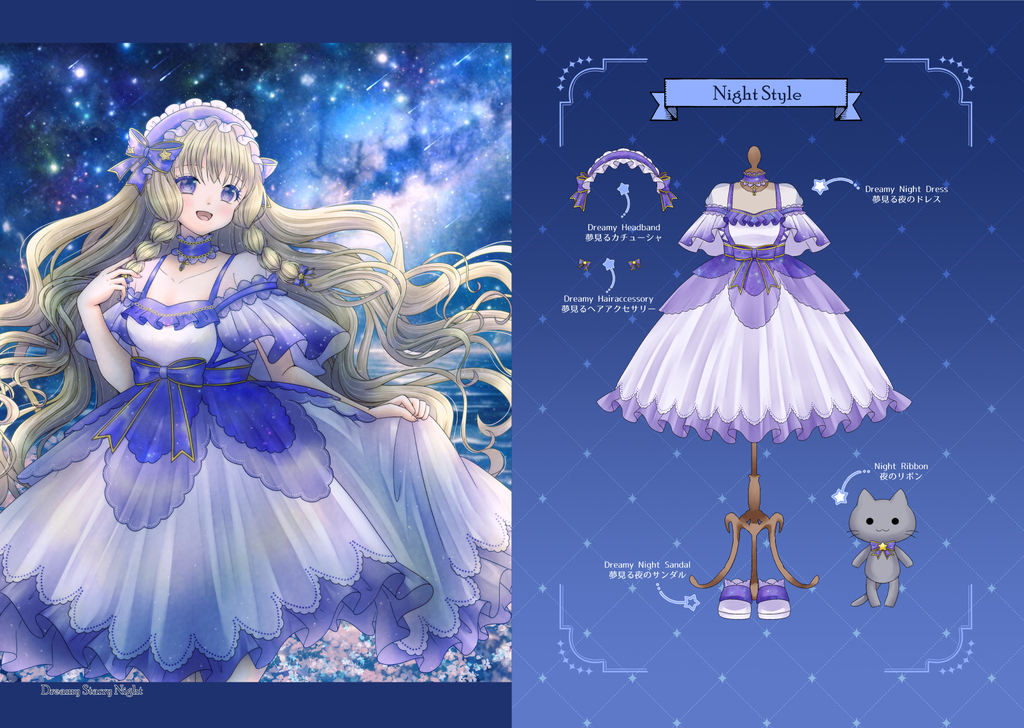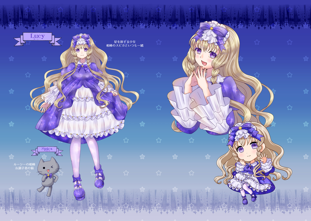 https://ma1ka8787.com/星を旅する少女ルーシーと相棒猫・スピカの衣装デザイン・イラスト本です。