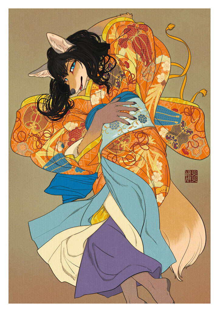 This illustration collection is created with the theme of “Kemono and Kimono,” aiming to evoke the elegance and atmosphere of bijinga and traditional Japanese-style painting.