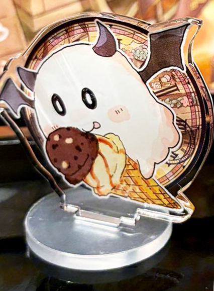 M3-2025秋にてリリースしたシングル『Helados Flores y Estrellas』より、アイスクリームが大好きな使い魔ちゃん(エラドスちゃん)のアクリルスタンドです。やびさら先生による可愛らしいタッチ、優しい色合で描かれた世界観を、是非手元に飾ってみてください><*
