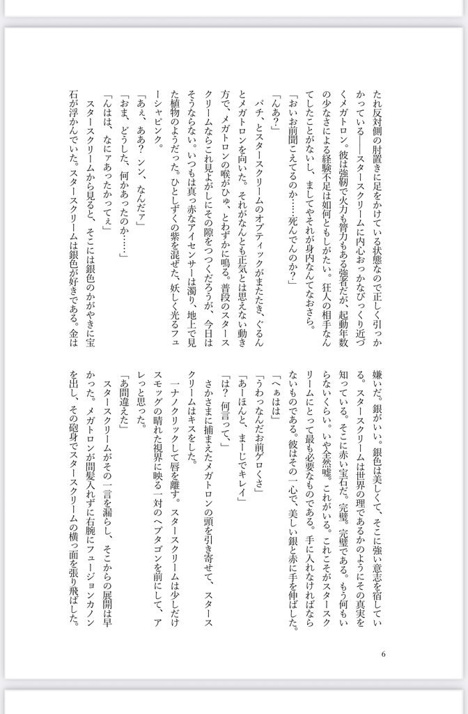 トランスフォーマーONEのスタメガです。本編後時空。薬物を盛られたスタスクがうっかりメガ様にキスをして、同時に諸々トラブルが発生する話。