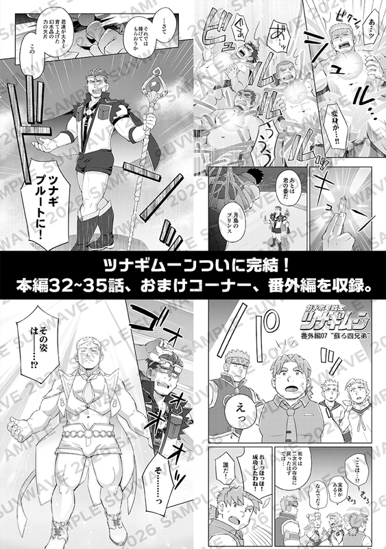 【野郎フェス2026-summer- 新刊】 ツナギムーンシリーズ最終章! 明かされるニッカポッカ仮面誕生の秘密とマスター・リットクの目的。 ツナギ戦士達はとらわれた彼を救い出せるのか――…! 【収録内容】32話~35話、おまけコーナー“はるなチャンネル”、 番外編マンガ“蘇る四兄弟”、キャラクタープロフィール ※32、35話は通常回よりページ数増量仕様です。