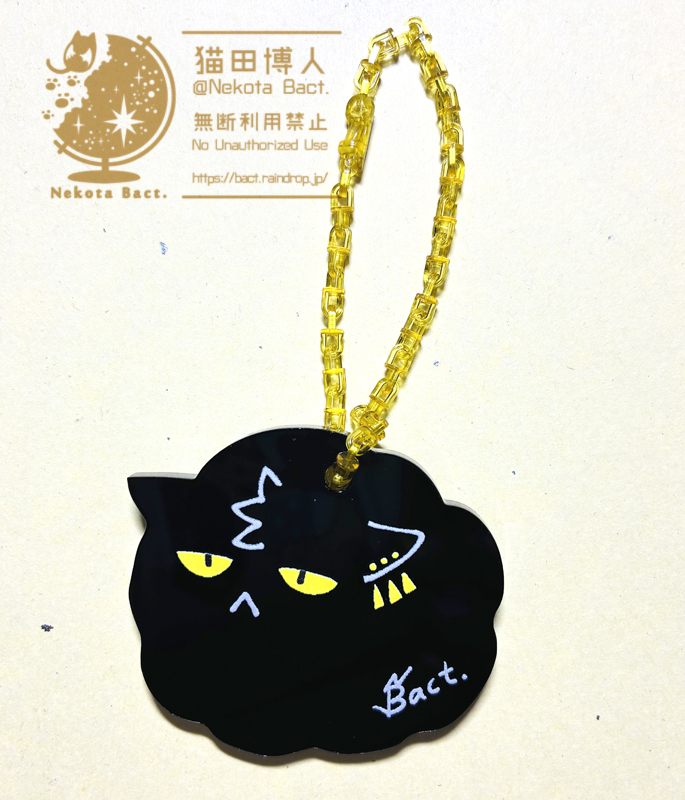 https://bact.raindrop.jp/「猫と私のごはん処」のでっかい黒猫verの、ヤナギのアクキーです。