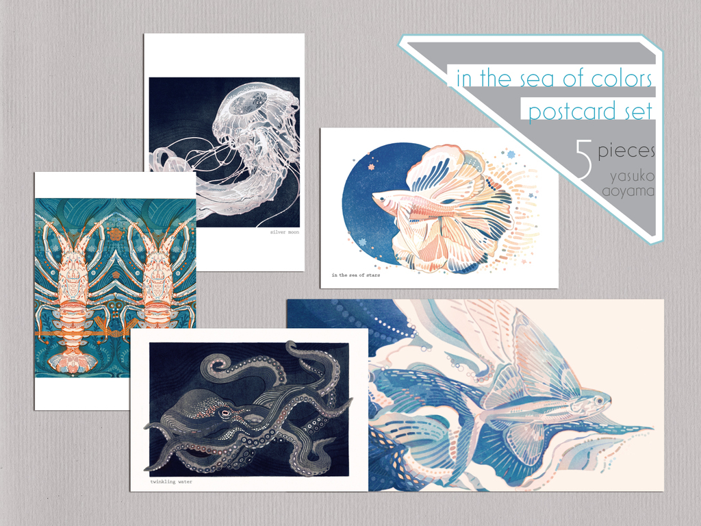 http://www.colorier.org水生生物モチーフの作品を集めたポストカード5枚セットです。