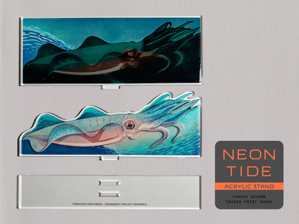 版画作品「neon tide」をプリントしたアクリルスタンドです。