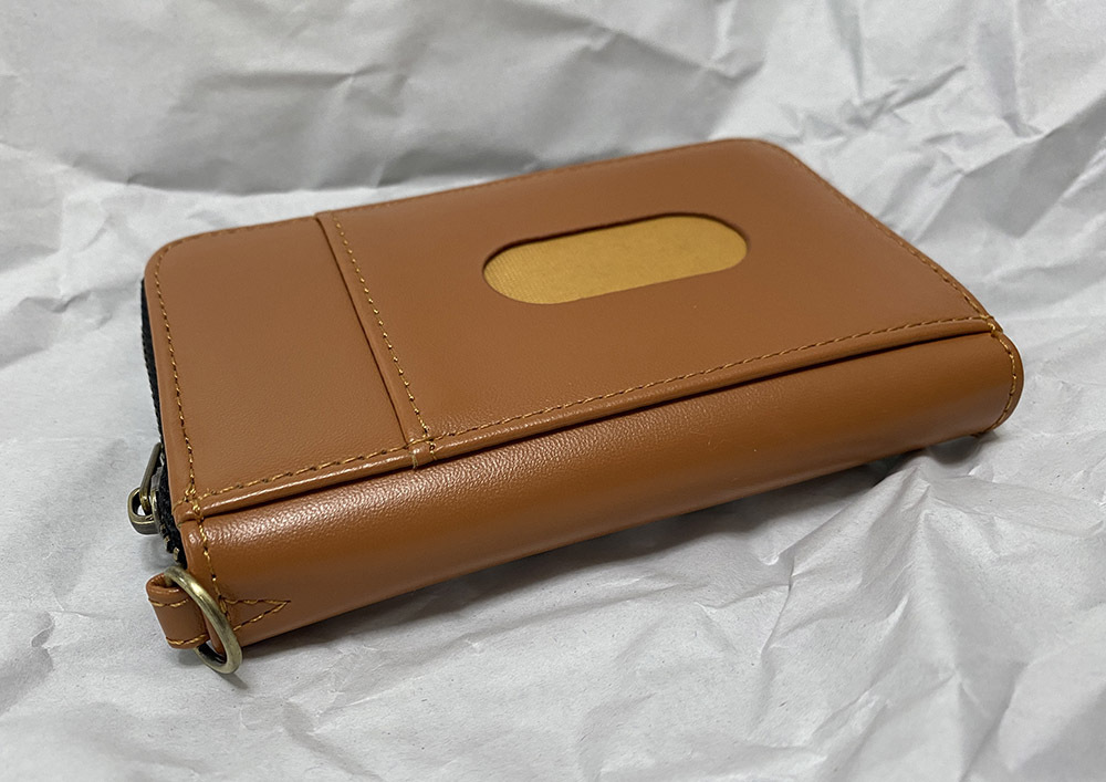 コインやカードが入るパスケースです。Dカン付きなのでリールの取り付けもできます。