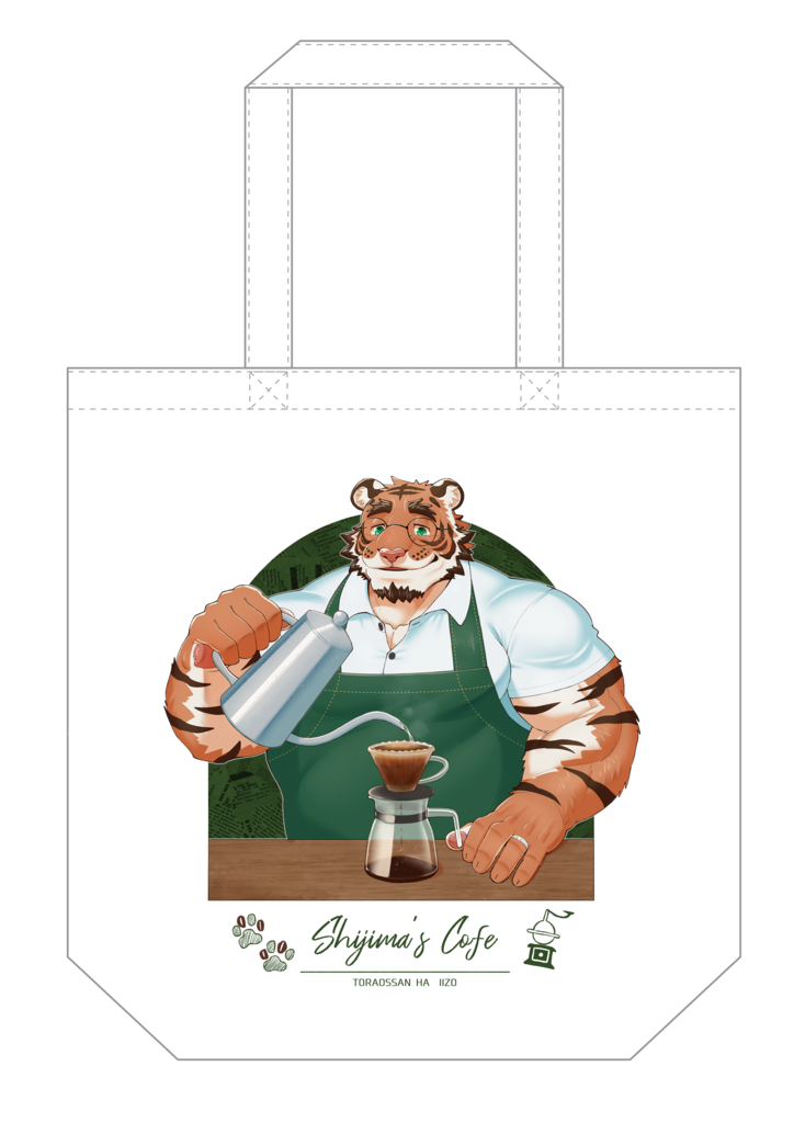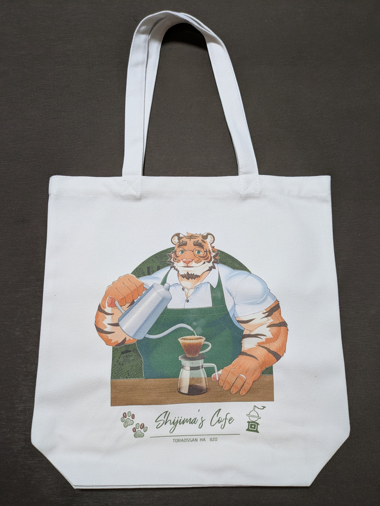 『虎おっさん店主は優しすぎて断れない』に登場する店主さんのトートバッグです。
