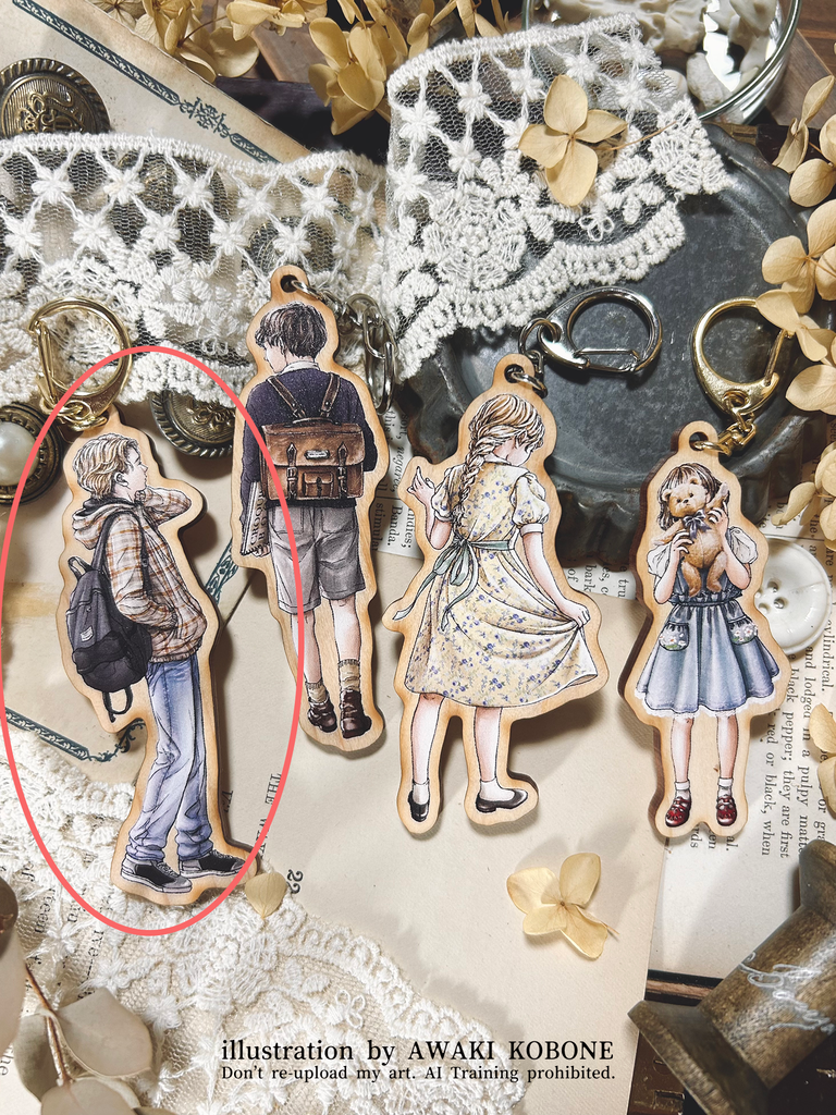 https://potofu.me/awakikobone国産の天然木材にイラストをプリントしたウッド素材のキーホルダーです。