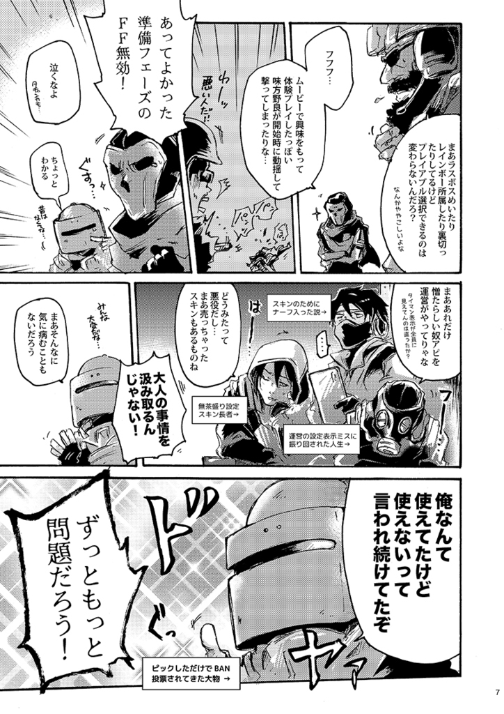 レインボーシックスシージX(R6S)のオペレーターメインギャグ漫画本。十年目も盾の仕様に振り回される通常運行のレインボー部隊にご期待ください。