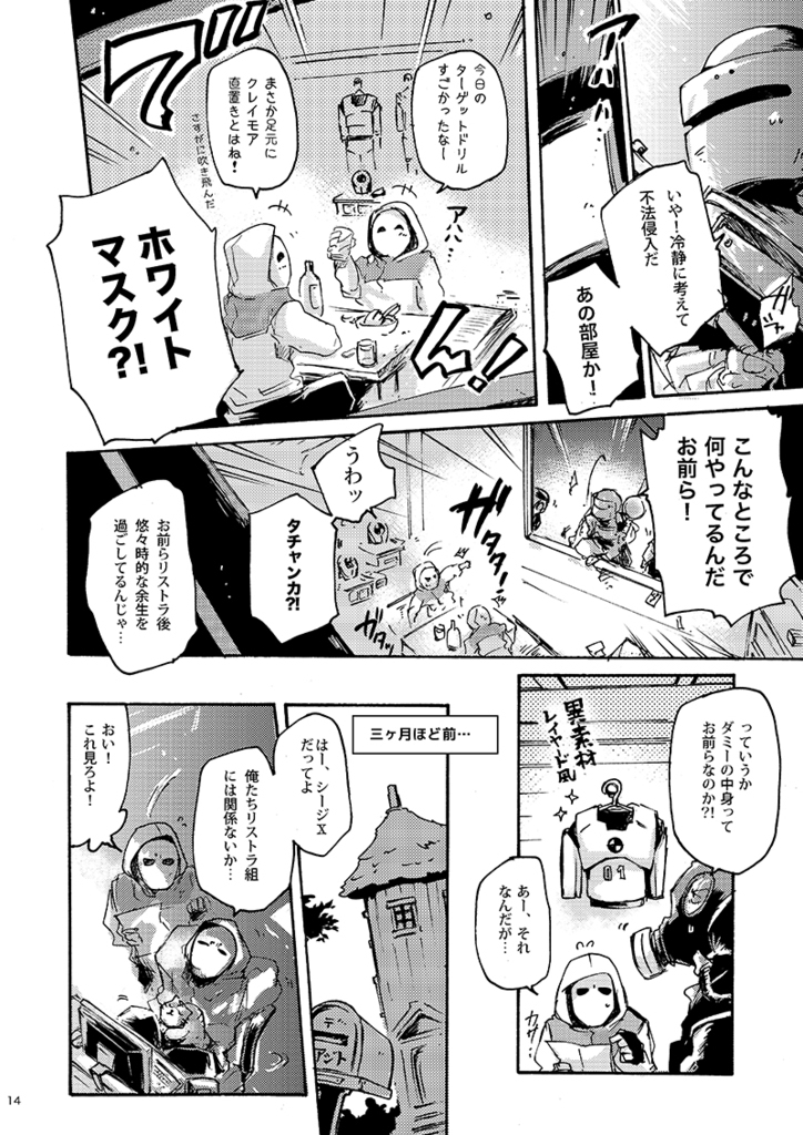 http://m-t.mods.jp/acss/レインボーシックスシージX(R6S)のオペレーターメインギャグ漫画本。十年目も盾の仕様に振り回される通常運行のレインボー部隊にご期待ください。