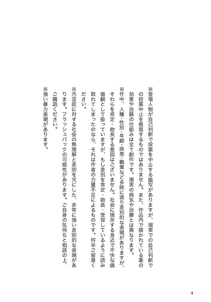 文学フリマ東京40にて初売り 第八回ハヤカワSF大賞一次審査通過作品を大幅加筆修正。 社会に馴染めず、誰とも親密な関係を築けないまま孤独な中年になった「お前」は、ある日遂に精神の均衡を崩し入院する。 自分にも人生にも希望を見出せないお前に医者は「好かれる性格になれる」という新薬の治験を勧める。 最初は薬を疑っていたお前だったが、その効果は劇的なものだった。 お前の性格は大きく変化し、たちまち友人や恋人に恵まれた順風な人生を送り始めるのだが……。 ※汚言症に対する差別的な表現を多く含みます。フラッシュバックの可能性がありますので、ご自身の気持ちと相談の上、ご購読ください。 ※人種、性別、年齢、職業、疾患などに対する差別表現を含みます。