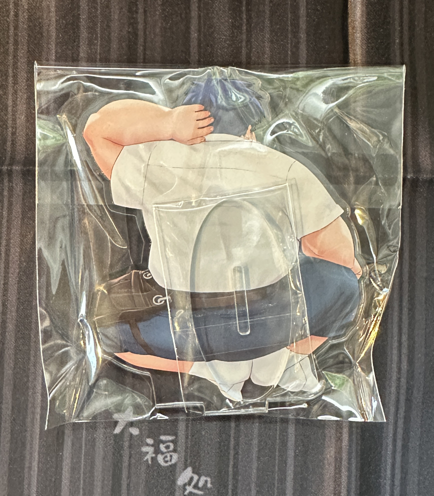 https://twitter.com/daihukudokoro魂これに登場する「犬童夏人」の、非公式アクリルスタンドです。裏面は背中がプリントされています。