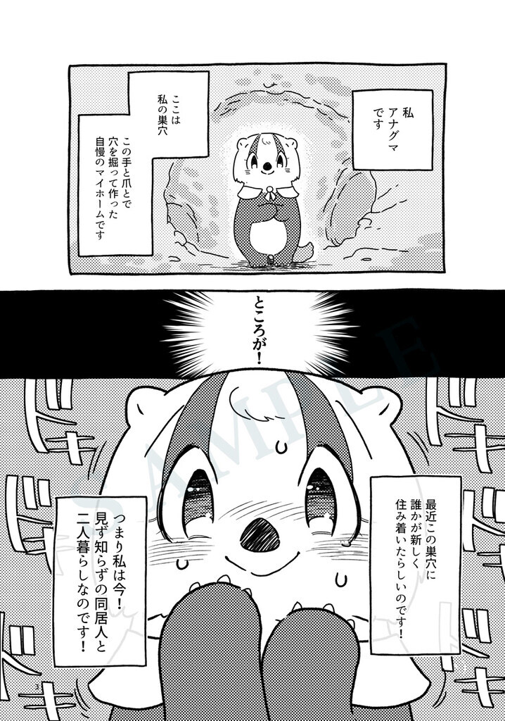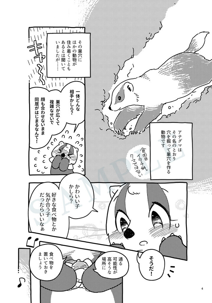 アナグマの巣穴に住みついた同居人は…へっぽこタヌキ?