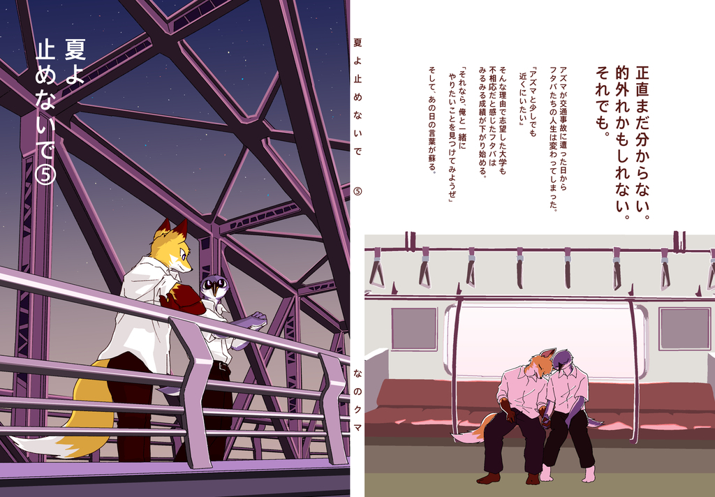 ケモノのオリジナルBL漫画です。 爽やかな青春時代、淡い初恋を追体験したい方に ぜひ読んでいただきたいです。 <あらすじ> アズマが交通事故に遭った日から、フタバたちの人生は変わってしまった。 『アズマと少しでも近くに居たい』 そんな理由で志望した大学も不相応だと感じたフタバは、みるみる成績が下がり始める。 「それなら、俺と一緒に やりたいことを見つけてみようぜ」 そして、あの日の言葉が蘇る。
